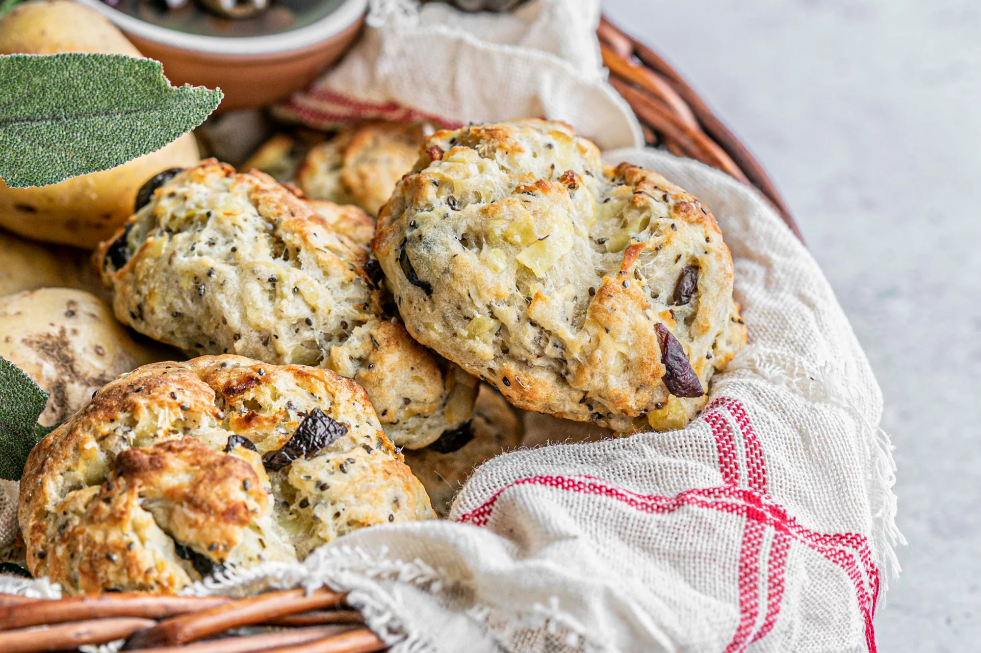 Ja, je leest het goed: broodjes van aardappel. Het deeg combineert geraspte en gepureerde aardappelen met olijven, knoflook, chiazaadjes en oregano, en bakt in de oven tot goudbruine bolletjes met een heerlijke mediterrane geur. Serveer warm naast een stoofpotje of neem ze mee als picknicksnack, ze zijn veganistisch, smaakvol en verrassend makkelijk te maken.