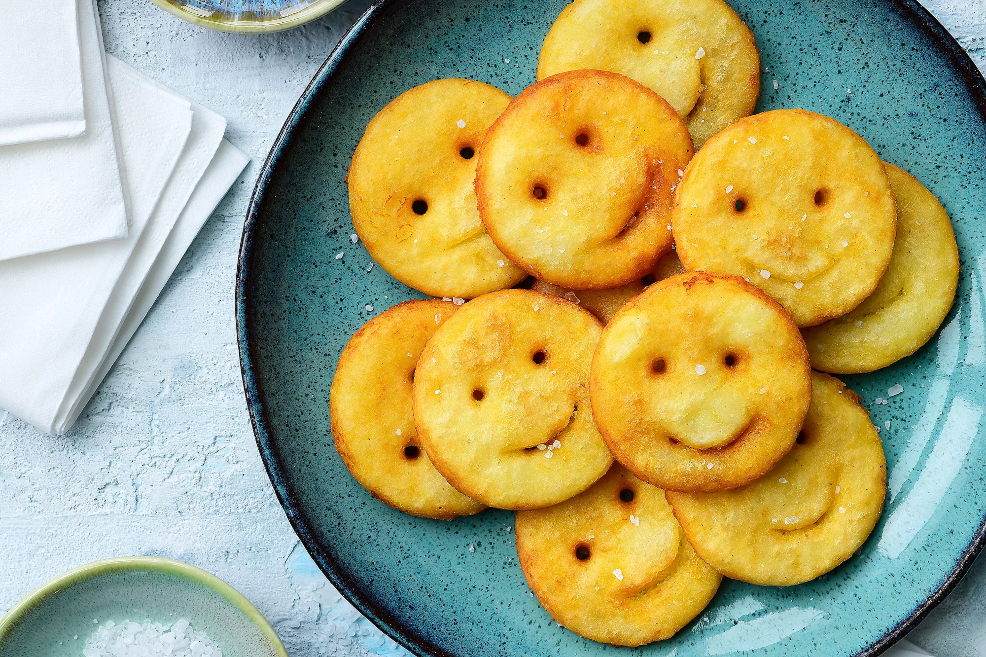 Wie zegt dat aardappelen saai zijn, heeft duidelijk nog nooit zelf aardappelsmileys gemaakt! Rol de puree uit, steek vrolijke gezichtjes uit en frituur ze goudbruin. Serveer met een barbecuesausje en je hebt zowel kinderen als volwassenen onmiddellijk om je vinger gewonden. Borrelsnack én bijgerecht in één, en al helemaal indrukwekkend als je vertelt dat je ze zelf hebt gemaakt.