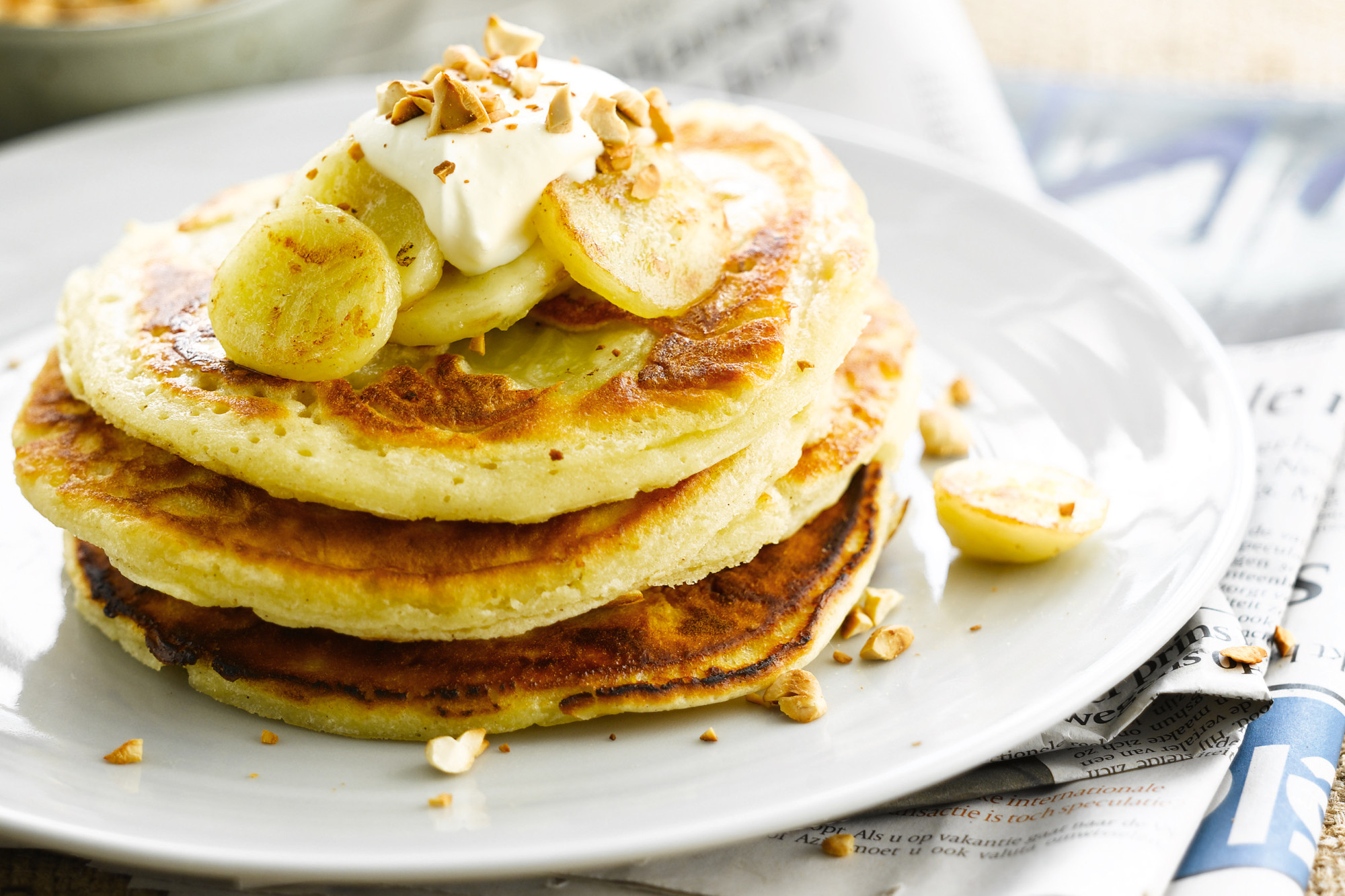 Maak van je ontbijt een feestje! Deze pannenkoekjes zijn razendsnel klaar: je hoeft de banaan alleen maar te prakken en te mengen met ei en een snufje kaneel. Ze zijn van nature zoet, dus stroop of suiker heb je bijna niet meer nodig.