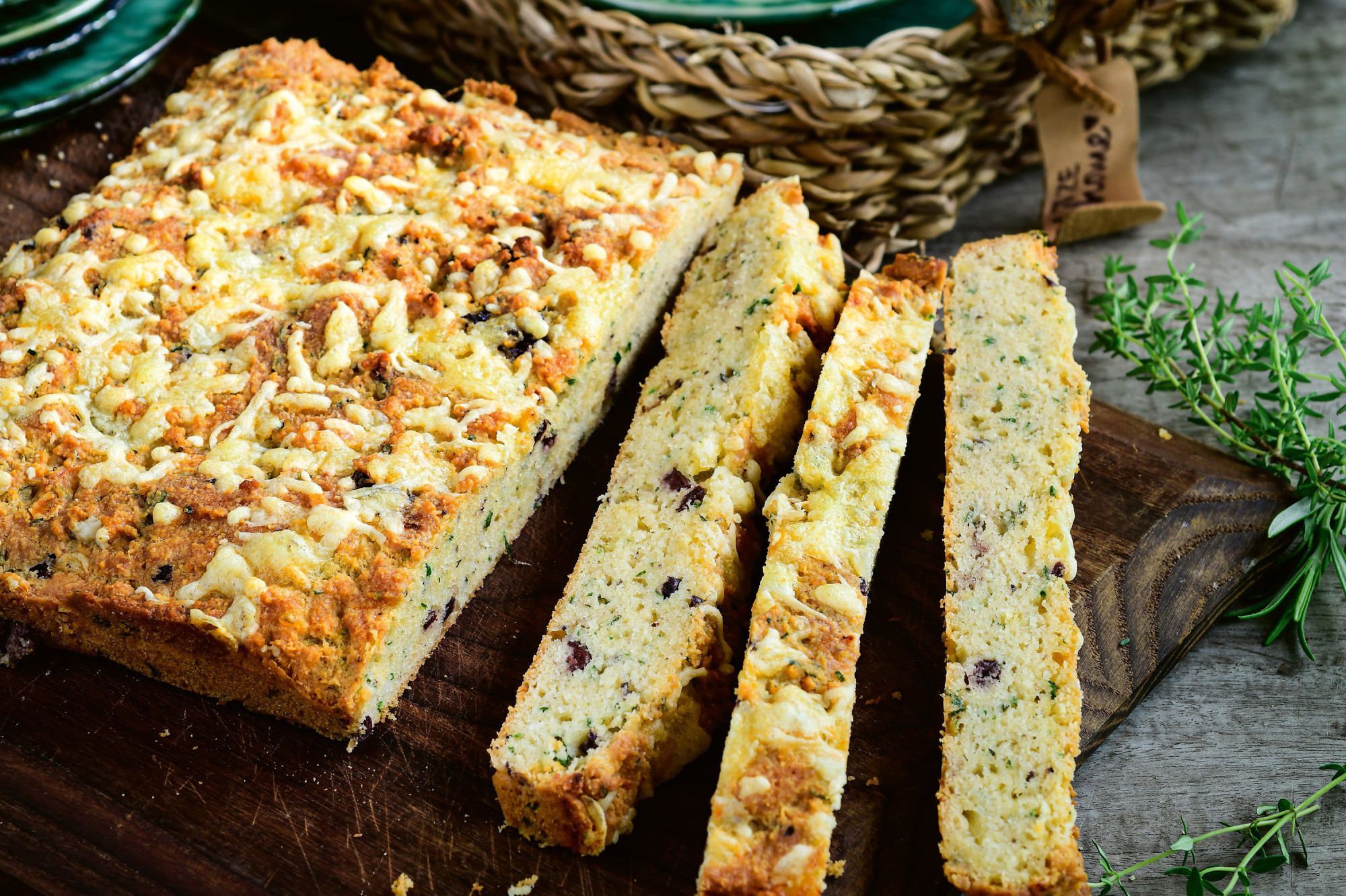 Dit aromatische brood zit boordevol smaak: ansjovis, zwarte olijven en een kruidenmix van rozemarijn, tijm en peterselie. Bovenop zorgt een krokant korstje van geraspte kaas en enkele tijmblaadjes voor extra bite. Het kruidige karakter maakt het brood tot de perfecte begeleider van een lichtzoete herfstsoep, bijvoorbeeld van pompoen of ajuin.