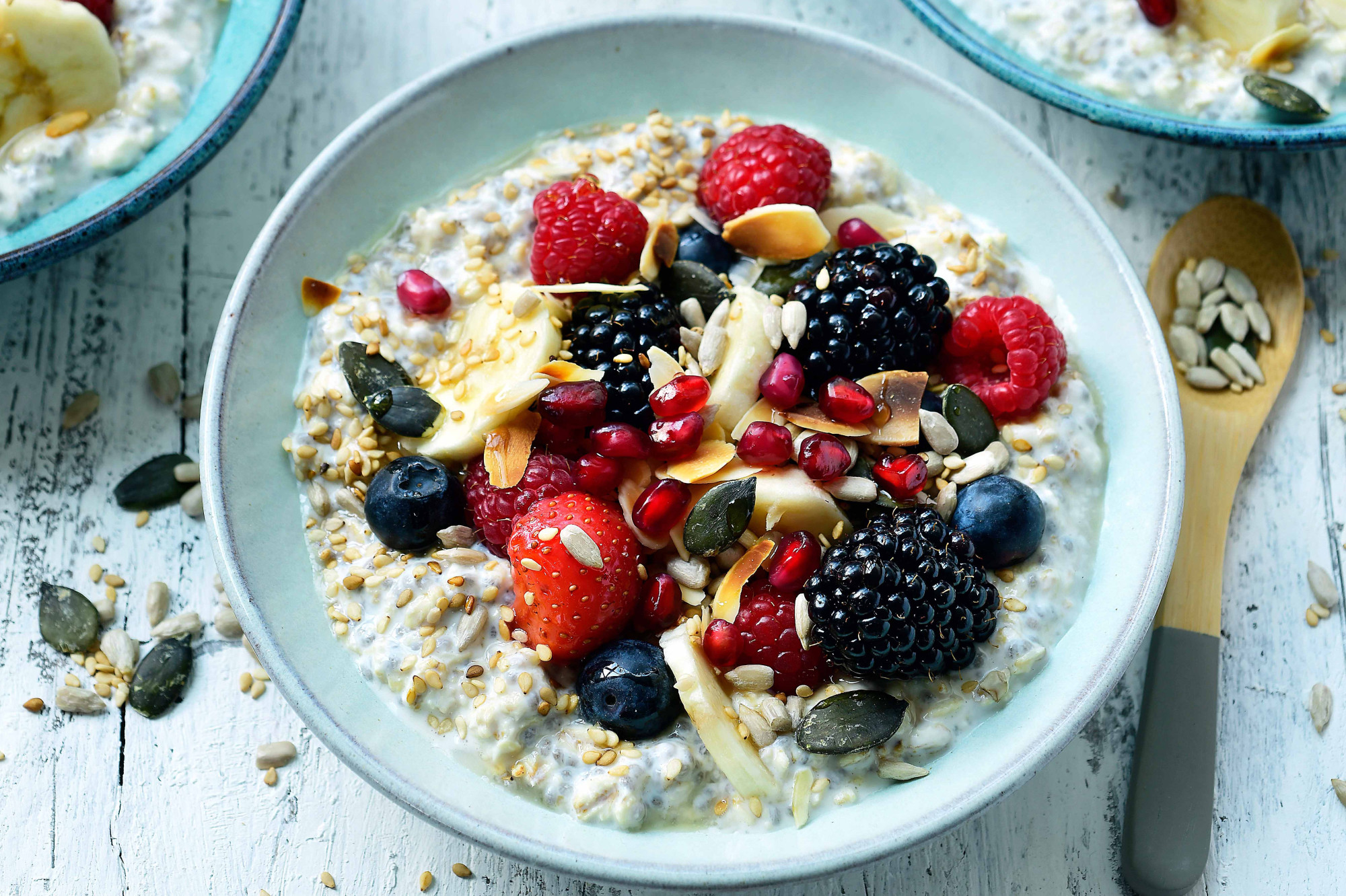 Havermout vormt de basis van overnight oats en staat bekend om zijn positieve eigenschappen zoals vezelrijk zijn en het bevatten van langzame koolhydraten, wat zorgt voor een langdurig verzadigd gevoel. Bovendien maak je door toevoeging van fruit, noten, zaden of eiwitrijke yoghurt aan je overnight oats er een nog voedzamer ontbijt van!