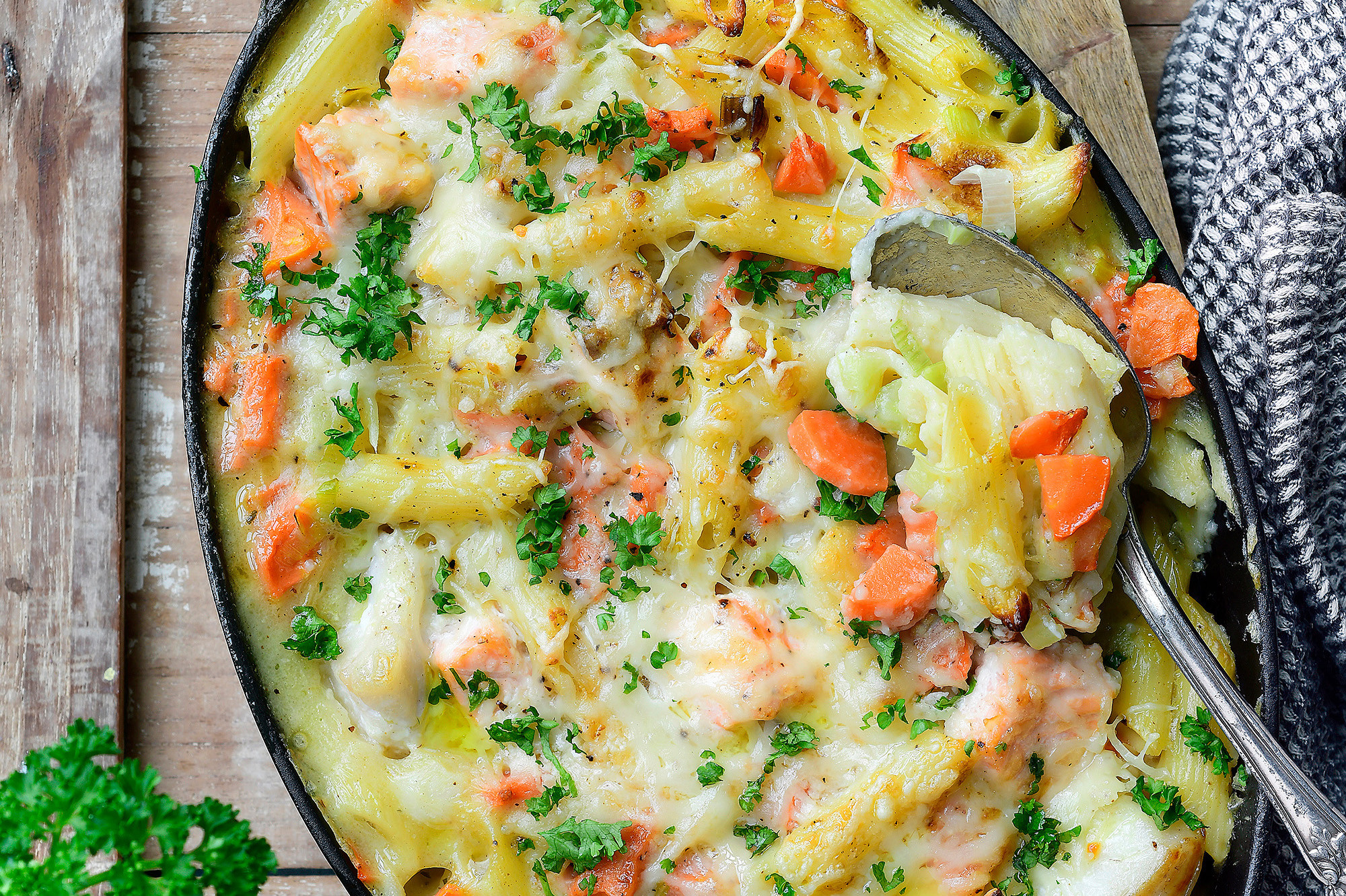 Deze ovenschotel combineert gemak met smaak. Alles in één schaal, voedzaam en perfect voor drukke dagen. De combinatie van pasta en vis blijkt ook in 2025 een echte publieksfavoriet.