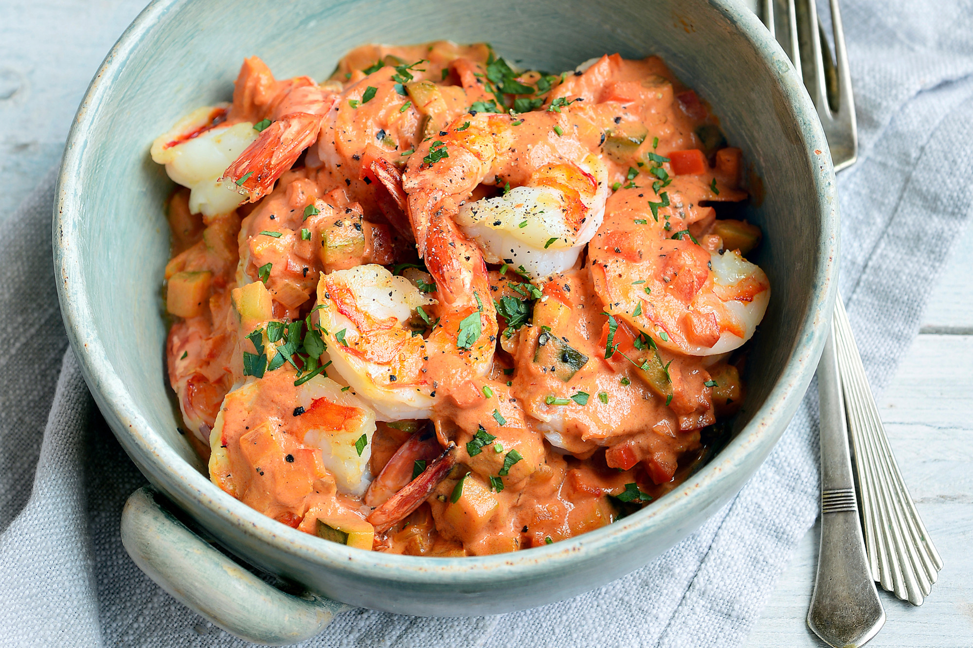 2. Scampi diabolique met fijne groentjes