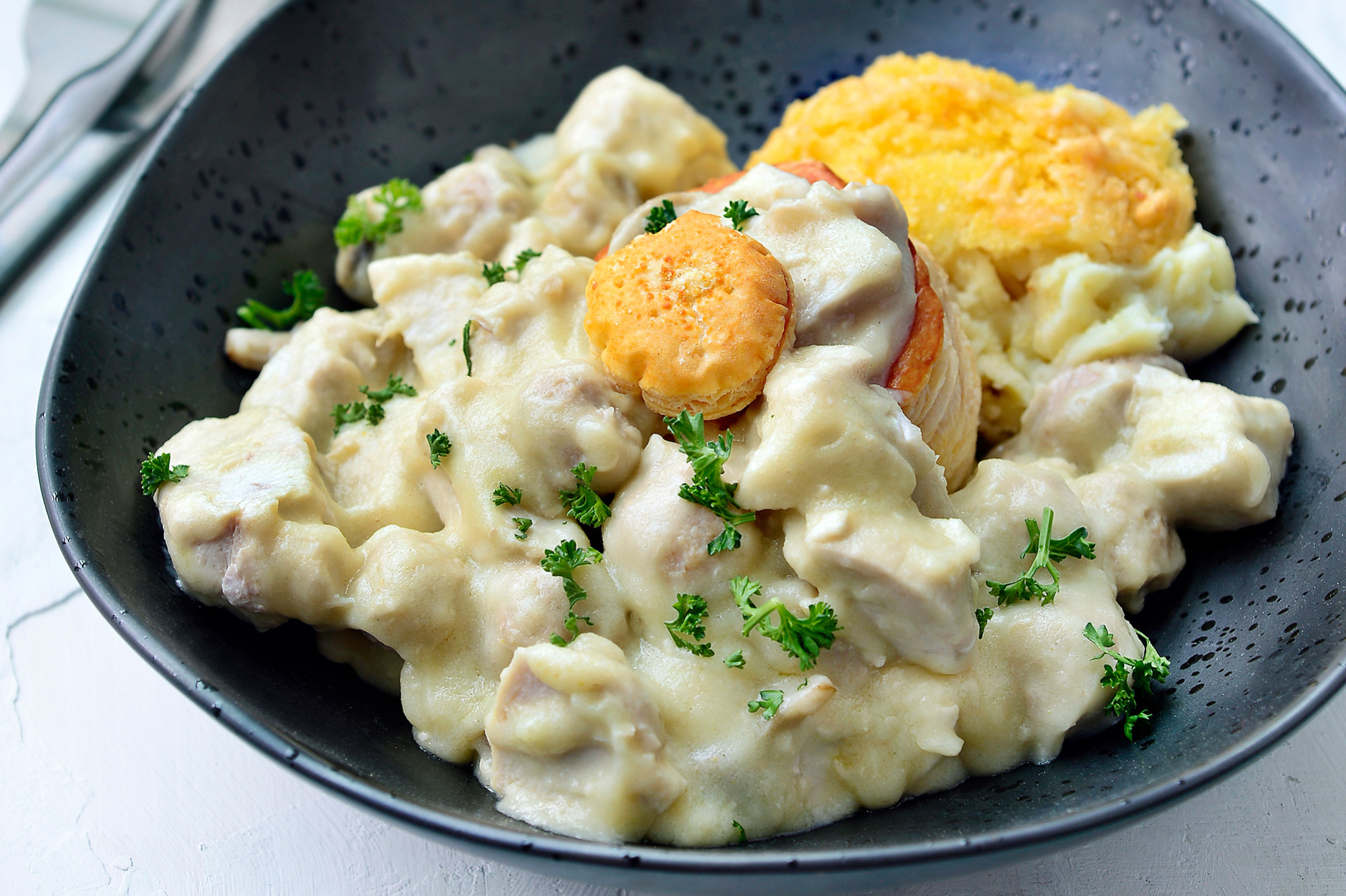 9. Normandische kip met aardappelpuree