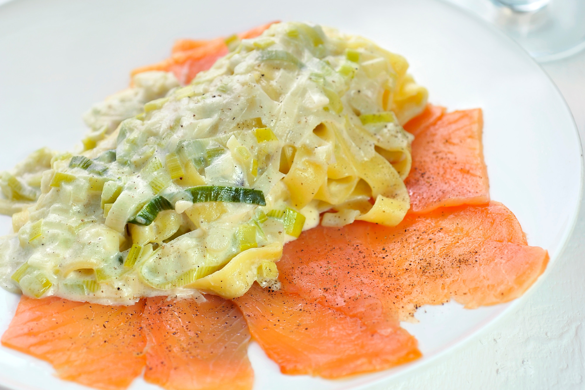 10. Pasta met gerookte zalm en prei