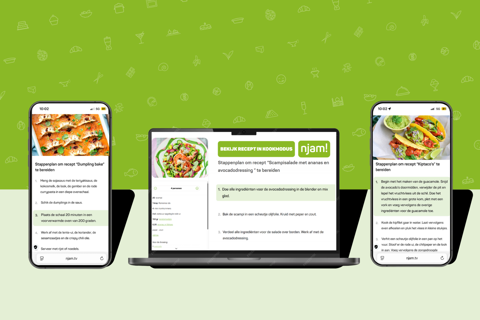 Goed nieuws voor iedereen die graag kookt met njam.tv aan zijn zijde: we hebben een gloednieuwe Kookmodus gelanceerd! Met deze handige functie volg je onze recepten voortaan stap voor stap en puntsgewijs, zonder afleiding. Zo wordt koken nóg eenvoudiger, overzichtelijker en vooral: relaxter.