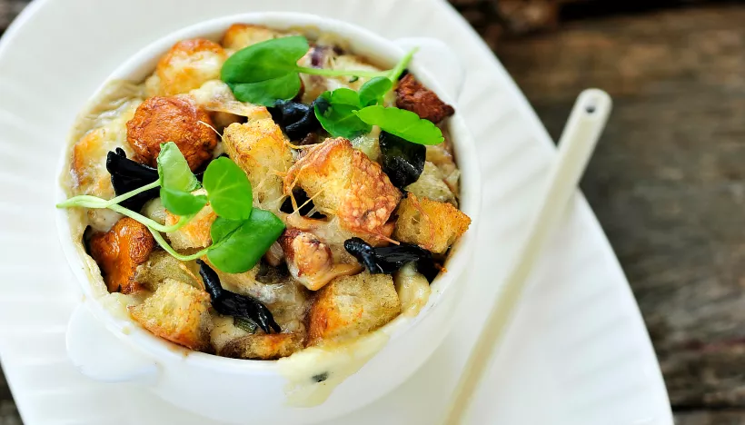 Deze vullende, krachtige soep van knolselderij, afgewerkt met zwarte truffel en geroosterde amandelen is een feest in het bord. De combinatie van romige knolselderij en aardse truffel maakt dit een voorgerecht dat perfect bij het wildseizoen past. De amandelen geven een subtiele crunch en extra aardse, nootachtige toetsen.