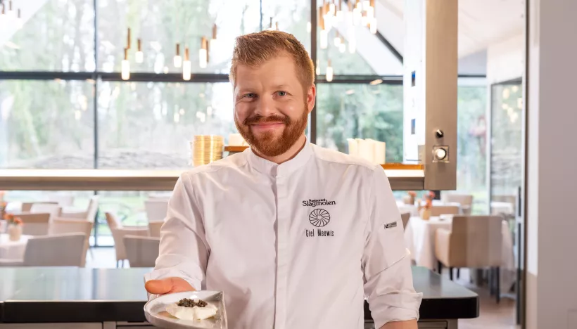 Na dit internationale parcours vervoegde Giel het team van Slagmolen, waar hij uitgroeide tot operationeel chef samen met zijn vader Bert. Met zijn verfijnde techniek, brede ervaring en sterke productkennis drukt hij er mee zijn stempel op de keuken.