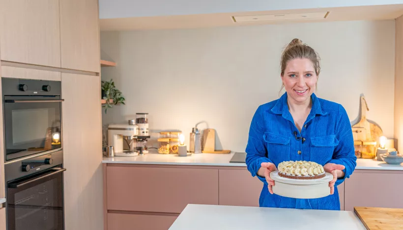 Traditionele taarten, met net dat tikkeltje meer. Hop, hop, we gaan er voor. Dat zou het motto van Sarah Renson kunnen zijn. Ze is enthousiast van aard, maar hoe dat te rijmen valt met een liefde voor bakken, iets wat toch geduld vraagt? “Het heeft iets rustgevends. Je weegt alles af, volgt het recept en krijgt dan min of meer hetzelfde resultaat. Tegelijk heeft het iets vrouwelijks, de tierlantijntjes die je in de afwerking kunt toevoegen.” Pâtissière worden was geen kinderdroom. “Ik bakte, zoals veel kinderen, af en toe wel eens koekjes, maar dat was het dan ook. Ik at daarentegen wel al altijd heel graag. Ik keek uit naar het ontbijt, vroeg dan wat we als lunch zouden eten en tijdens de lunch keek ik alweer uit naar het avondeten.”