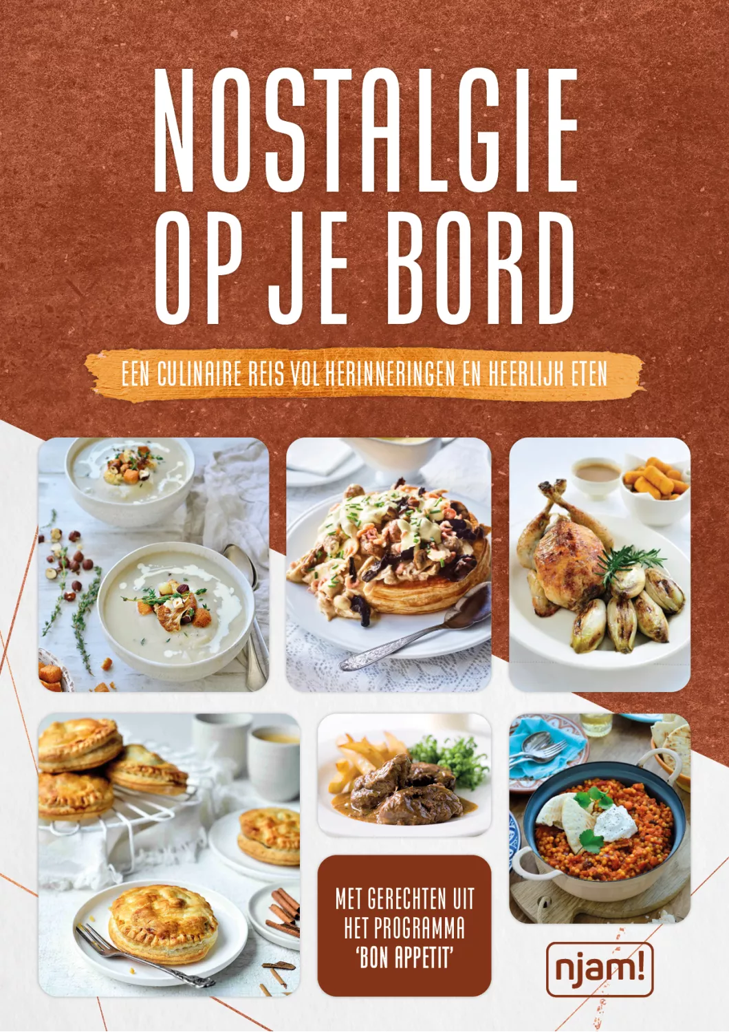 Ook het nieuwe seizoen van Bon Appétit ademt pure nostalgie. Njam!-chefs Jeroen De Pauw en Wim Ballieu nemen je opnieuw mee op culinaire vakantie, samen met zes heerlijke gasten. De ingrediënten blijven vertrouwd: gastronomische nostalgie, een snuifje avontuur, warme gesprekken en natuurlijk véél smaak en gezelligheid. In dit e-book ontdek je de favoriete nostalgische gerechten van de zes tafelgasten: voormalig veldrijder Niels Albert, oorlogsverslaggever op rust Rudi Vranckx, DJ en actrice Zohra Aït-Fath, Mama’s Jasje-frontman Peter Vanlaet, presentatrice en Miss België