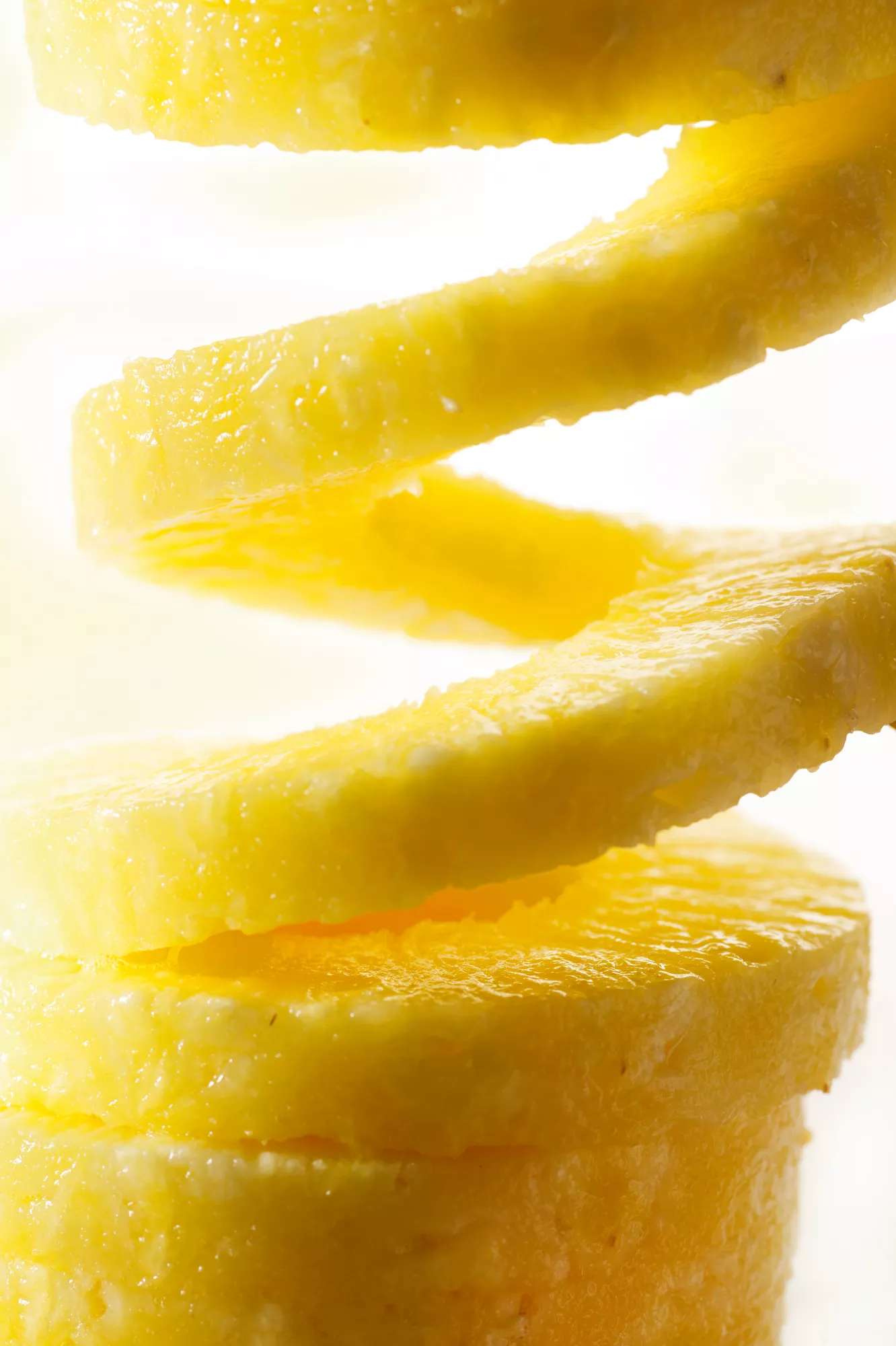 - Ananas bevat bromeline, een eiwitsplitsend enzym. Het heeft als voordeel dat het vlees of gevogelte malser maakt en ook de spijsvertering bevordert. Het is echter nadelig in combinatie met gelatine en zuivelproducten. Zo zal gelatine uiteenvallen, melk verzuren en yoghurt en plattekaas verwateren. Door de ananas enkele minuten te blancheren, verdwijnt dat effect. Ook ananas uit blik bevat geen bromeline.