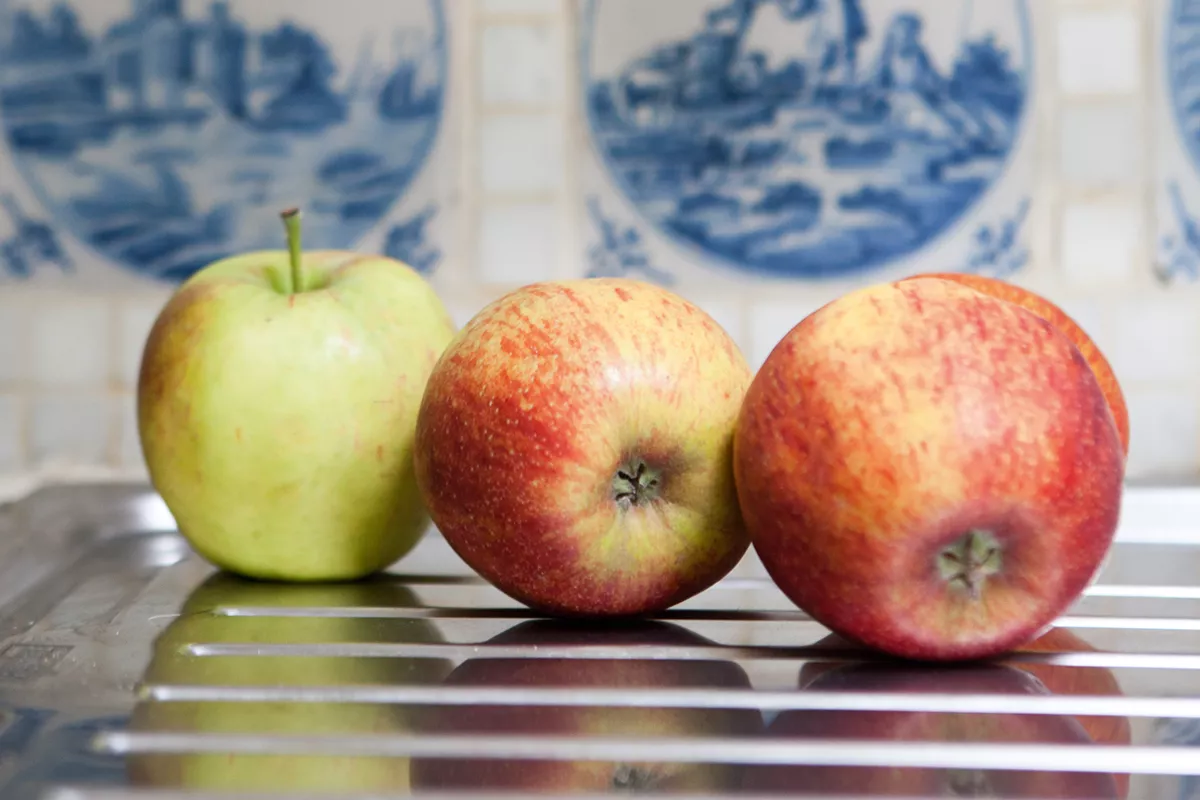 - ̓Kies stevige appelen zonder kneuzingen of rimpels. Kan je de schil lichtjes indrukken, dan is hij overrijp. Net zoals bij een meloen moet een verse appel wat zwaar aanvoelen om zijn sappigheid te illustreren.