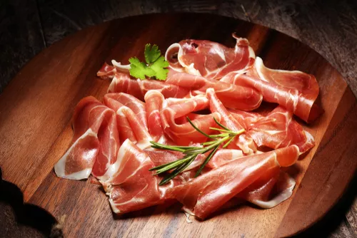 Gedroogde en gezouten fijne vleeswaren uit het Noorden van Italië. Bresaola wordt meestal in heel fijne sneetjes geserveerd en heeft een mooie, dieprode kleur.