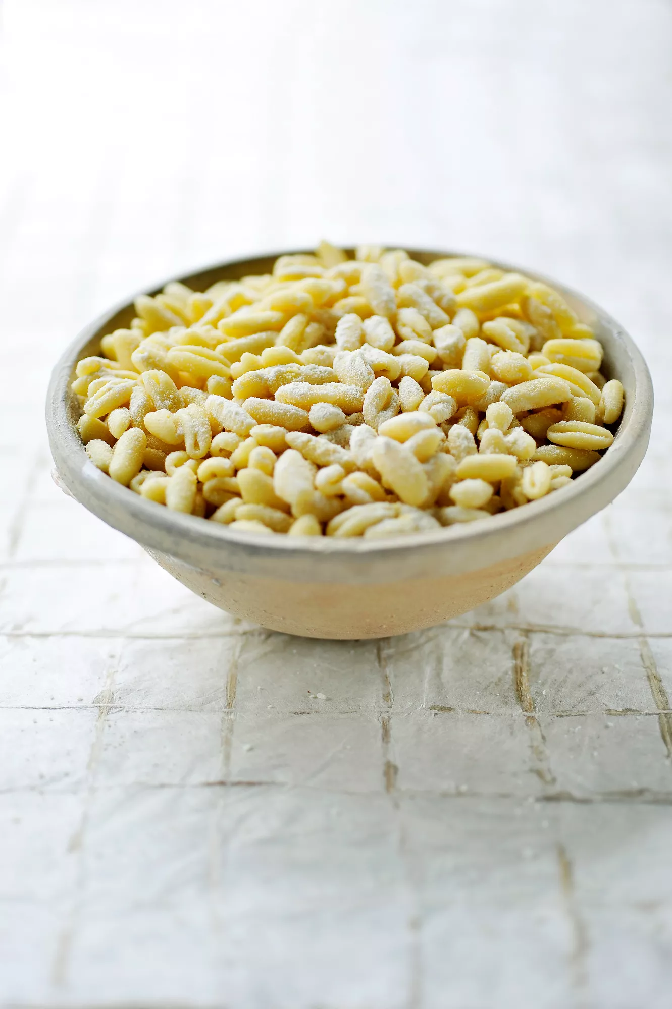 Half opgerolde pasta uit Molise, maar populair in heel Zuid-Italië. De rolletjes zijn ongeveer drie centimeter groot en het deeg bevat geen eieren.