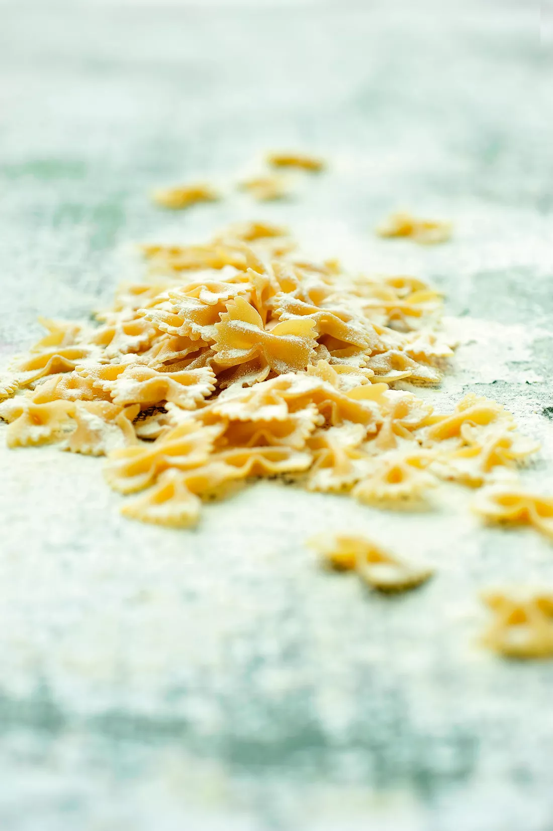 Farfalle wordt ook wel strikjes- of vlinderpasta genoemd. Farfalle’s zijn stukjes deeg van 3 cm op 3 cm die in het midden worden samengeknepen. De randjes zijn gekarteld.