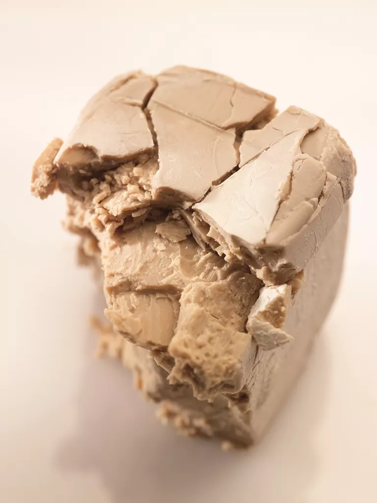 - Verse gist wordt verkocht als een compacte blok en heeft een vochtigheidsgraad van 70%. Het wordt verkruimeld met bloem in wat water en begint te werken als het in contact komt met het meel. Let er bij aankoop op dat de gist een frisse geur heeft. Als hij broos, kruimelig en grijs van kleur wordt, is hij niet meer bruikbaar.