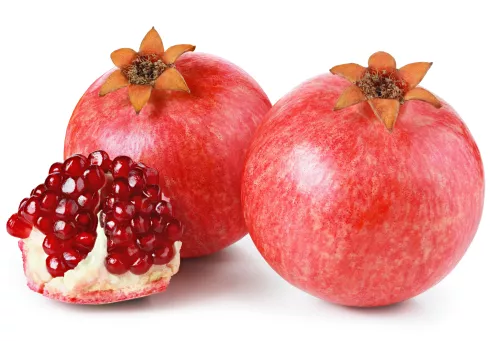 De schil is niet eetbaar maar moet mooi glanzen als je een granaatappel koopt. Voorzichtig, want deze vrucht maakt vlekken! Granaatappels zijn lekker sappig en de pitjes zijn leuk als decoratie. Al eeuwenlang wordt dit fruit geteeld in het Middellandse Zeegebied. Hoe zwaarder de vrucht, hoe meer sap hij zal bevatten. Granaatappel combineert heerlijk met couscous en wordt ook wel eens superfruit genoemd, want het bevat veel vitamine C en antioxidanten. De pitjes hebben een hydraterende werking en worden daarom ook wel eens verwerkt in dagcrèmes. Deze vrucht is het hele jaar door verkrijgbaar.