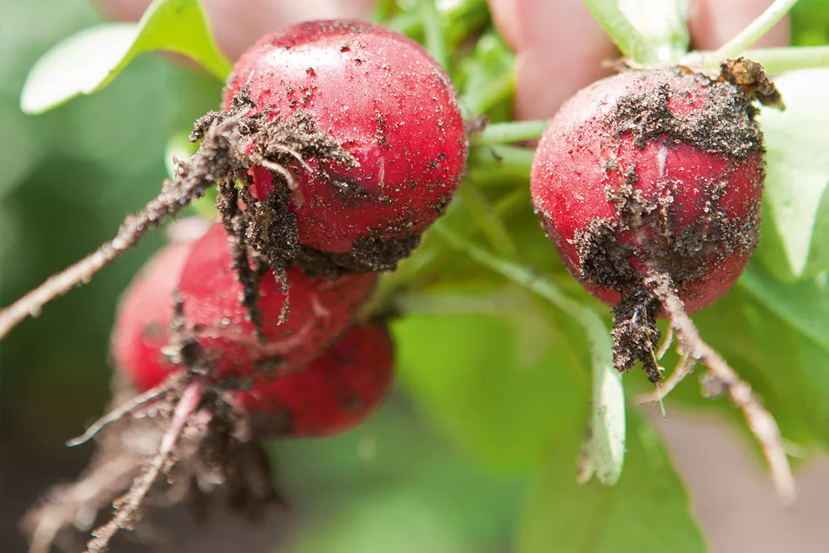 Radijsjes zaaien, groeien en oogsten gaat heel gemakkelijk. Ze worden vaak rauw gegeten en zijn heerlijk in salades. Radijsjes worden altijd verkocht met het loof er aan, zo blijven ze langer vers. Je mag zoveel radijsjes eten als je wil, want ze bevatten nauwelijks calorieën en vet. Daarenboven stimuleren ze ook de spijsvertering.