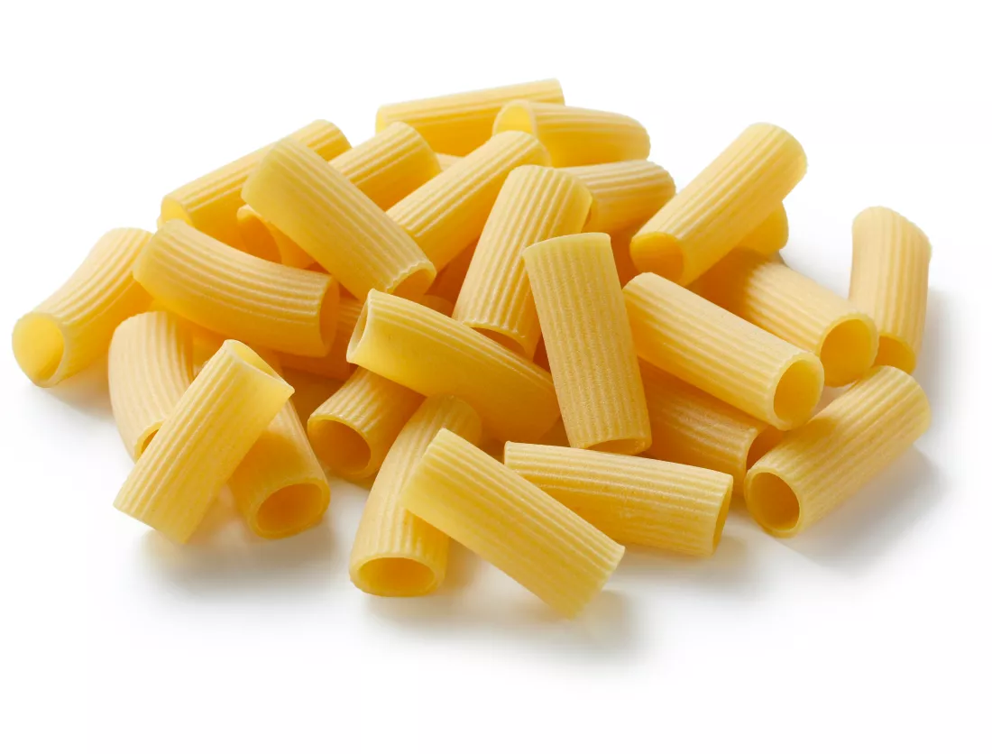Brede, geribbelde pastabuizen. Ze zijn groter dan de penne en recht afgesneden. De rigatoni dankt zijn naam aan de ribbels aan de buitenkant.