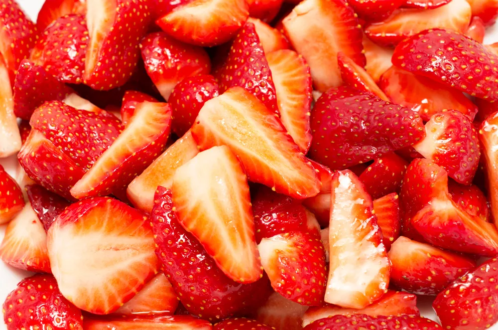 Laat de aardbeien een nachtje marineren in de koelkast.
