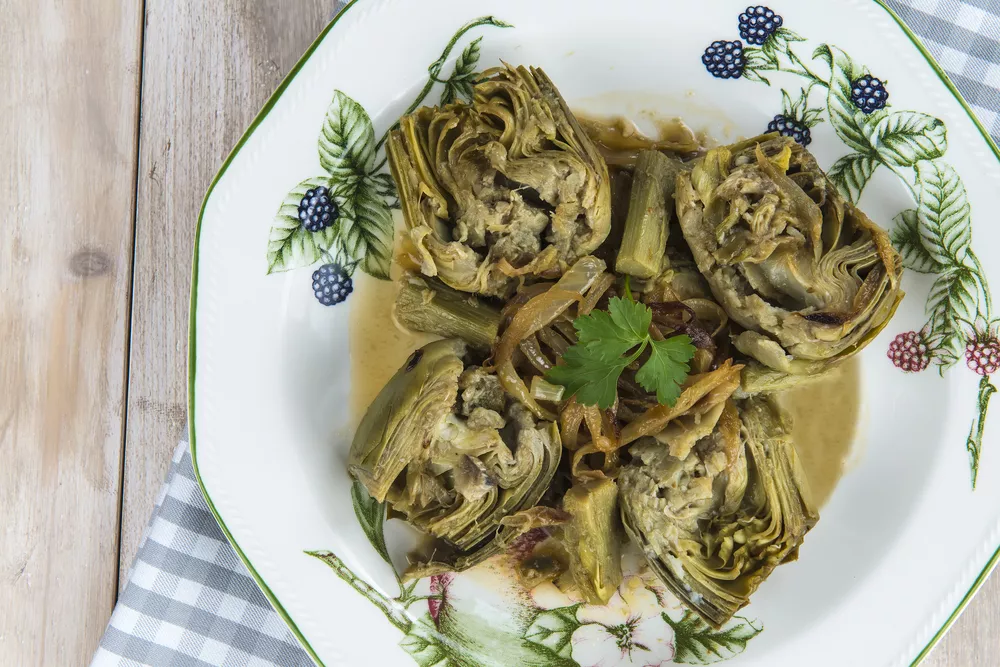 Zorg ervoor dat de artisjok met de bladeren naar beneden in het water ligt en laat 15 min. koken.