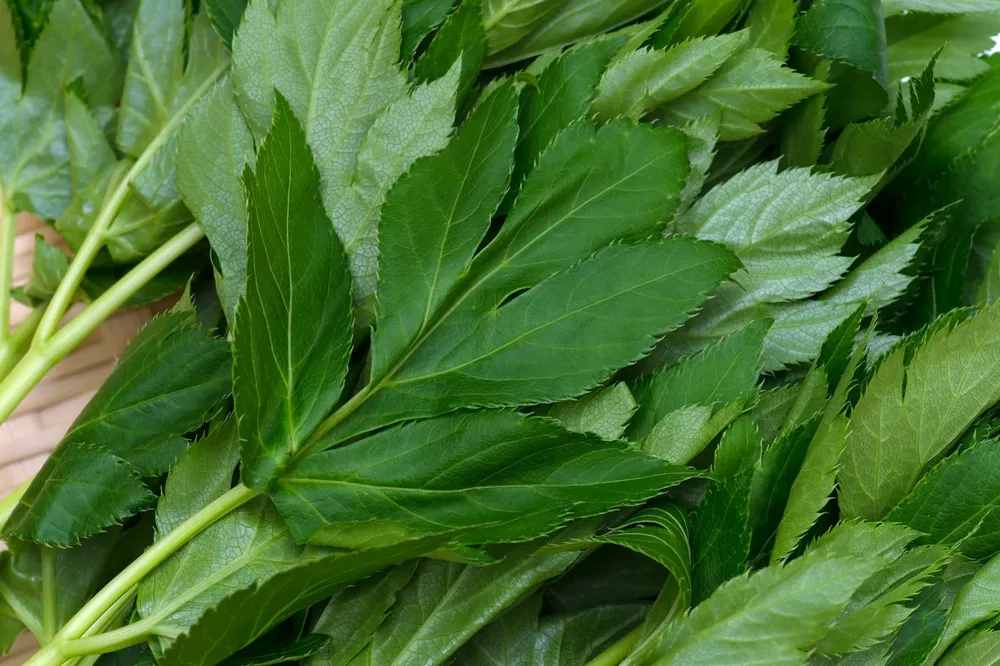 Verwijder de bladeren van de engelwortel en ontvlies vervolgens de stengels.