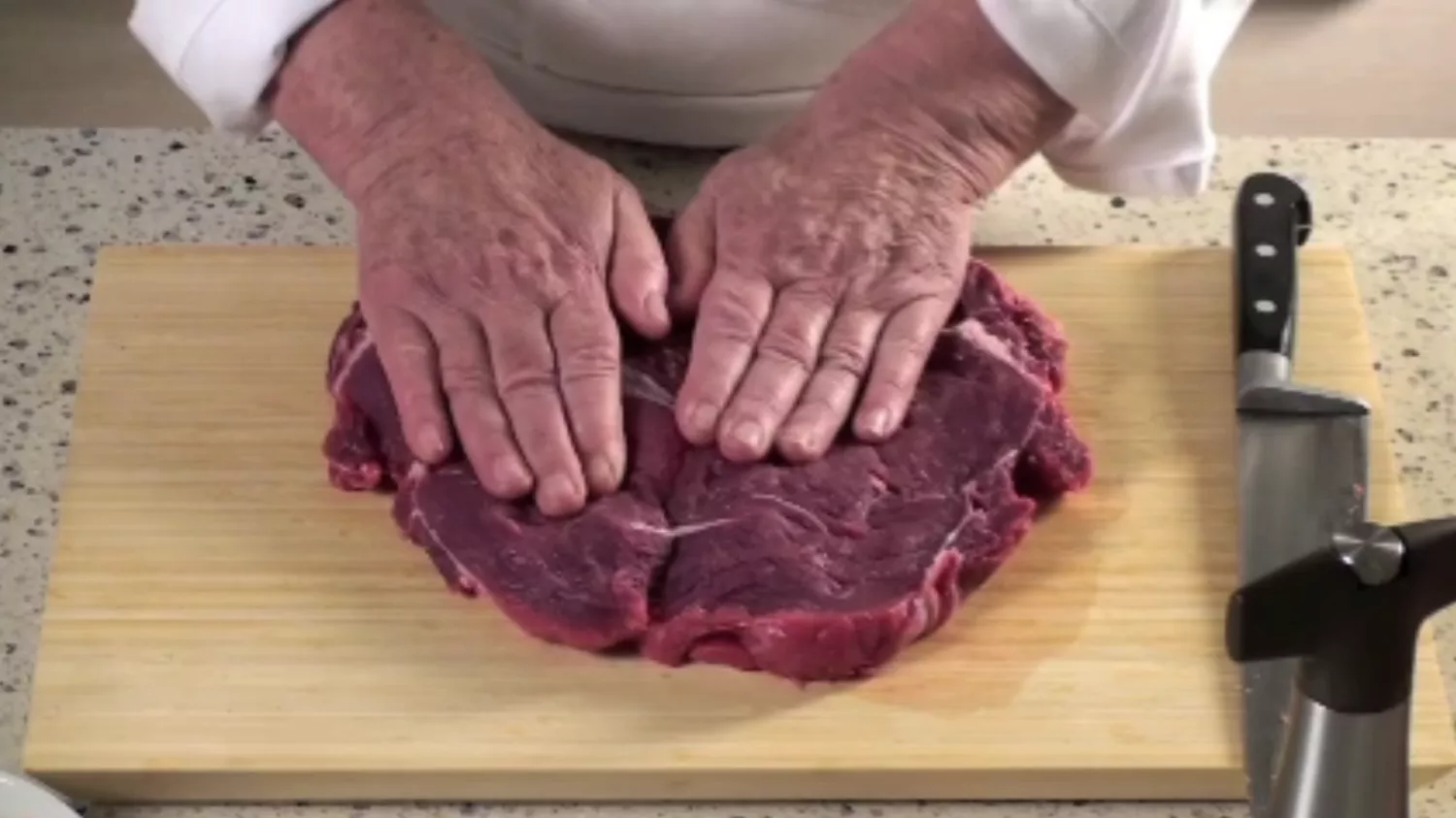 1. Voor rollade heb je een 1 kilo stevig rundvlees nodig waar je dunnen plakken van kunt snijden.