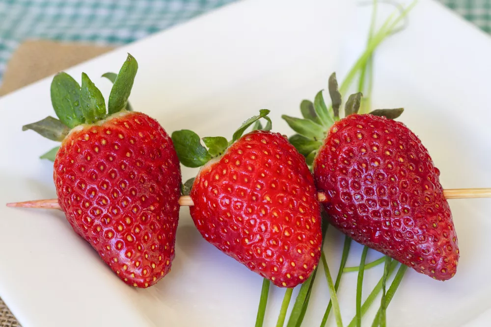 Zet alle aardbeien tegen mekaar en spies ze op een houten stokje.