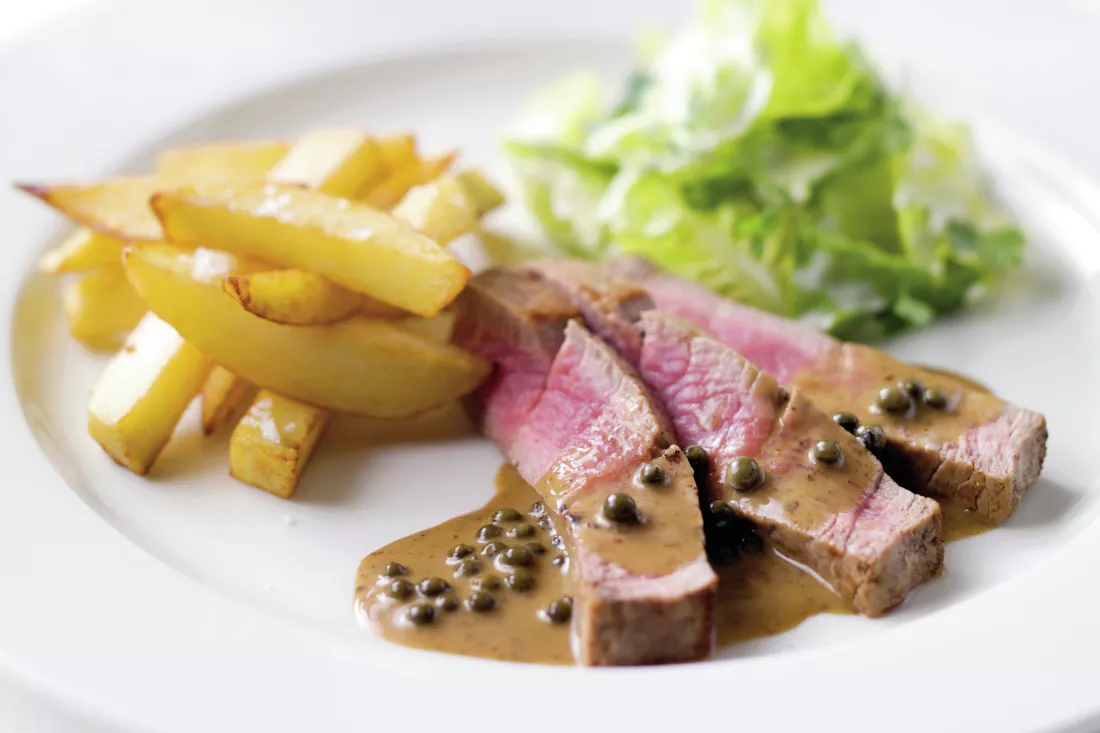 - Laten rusten. Haal de steak uit de pan. Leg hem op een warm bord of snijplank, losjes afgedekt met aluminiumfolie. Laat minstens 5 minuten rusten. Zo herverdelen de sappen zich en blijft het vlees sappig.