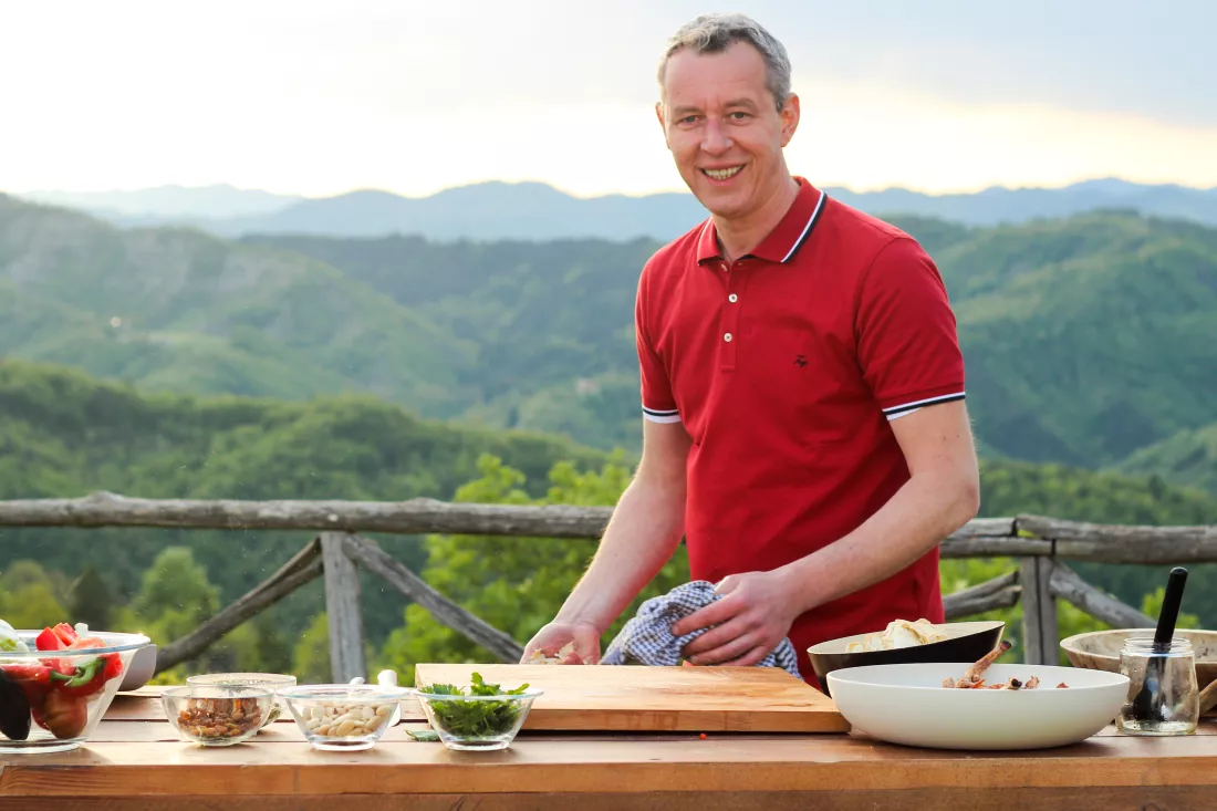 We kennen het allemaal: het is een stralende dag en jij sms’t je vrienden vanop het werk: “BBQ Vanavond?!”. Je probeert een uurtje vroeger te stoppen met werken om snel inkopen te doen en dan verval je steeds in hetzelfde patroon: veel vlees, wat rauwe groentjes en een stokbrood met kruidenboter. Maar dat is verleden tijd met de recepten van Bart Desmidt en zijn nieuwste njam!-programma: BBQ Vanavond?! Bart inspireert je met verrassende ingrediënten, korte boodschappenlijstjes en drie eenvoudige gerechten zodat je bij je volgende BBQ vooral gezellig kan genieten aan tafel!
