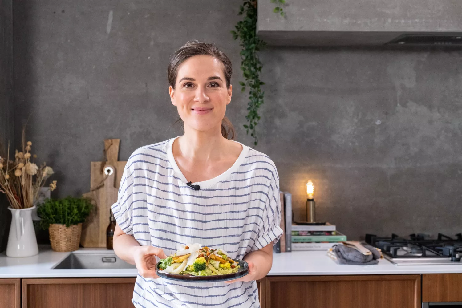 In het programma ‘Karola's Kitchen – gewoon gezond & goed’ deelt voedingswetenschapper Karolien Olaerts haar eetfilosofie met kijkend Vlaanderen en Nederland. In die filosofie staan de groenten centraal, maar Karolien weet als geen ander dat het lichaam op z’n best is met een gevarieerd eetpatroon en ingrediënten uit alle voedselgroepen.