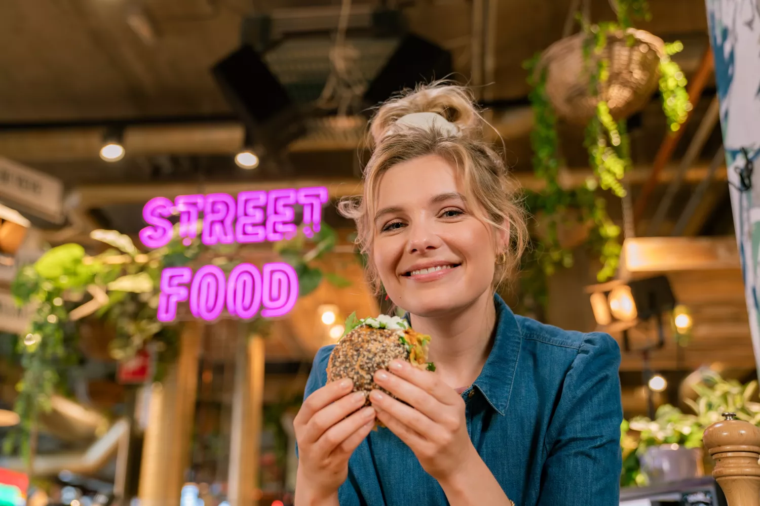 Alles wat ze gezien en geproefd heeft in de foodhall, inspireert haar om uiteindelijk ook zelf aan de slag te gaan met haar eigen streetfood gerechtjes. Spicy Mexicaanse taco’s, Amerikaans-geïnspireerde pulled chicken burgers, Hollandse kost en Oosterse bakjes vol lekkers… Dat en nog veel meer is Streetfood!