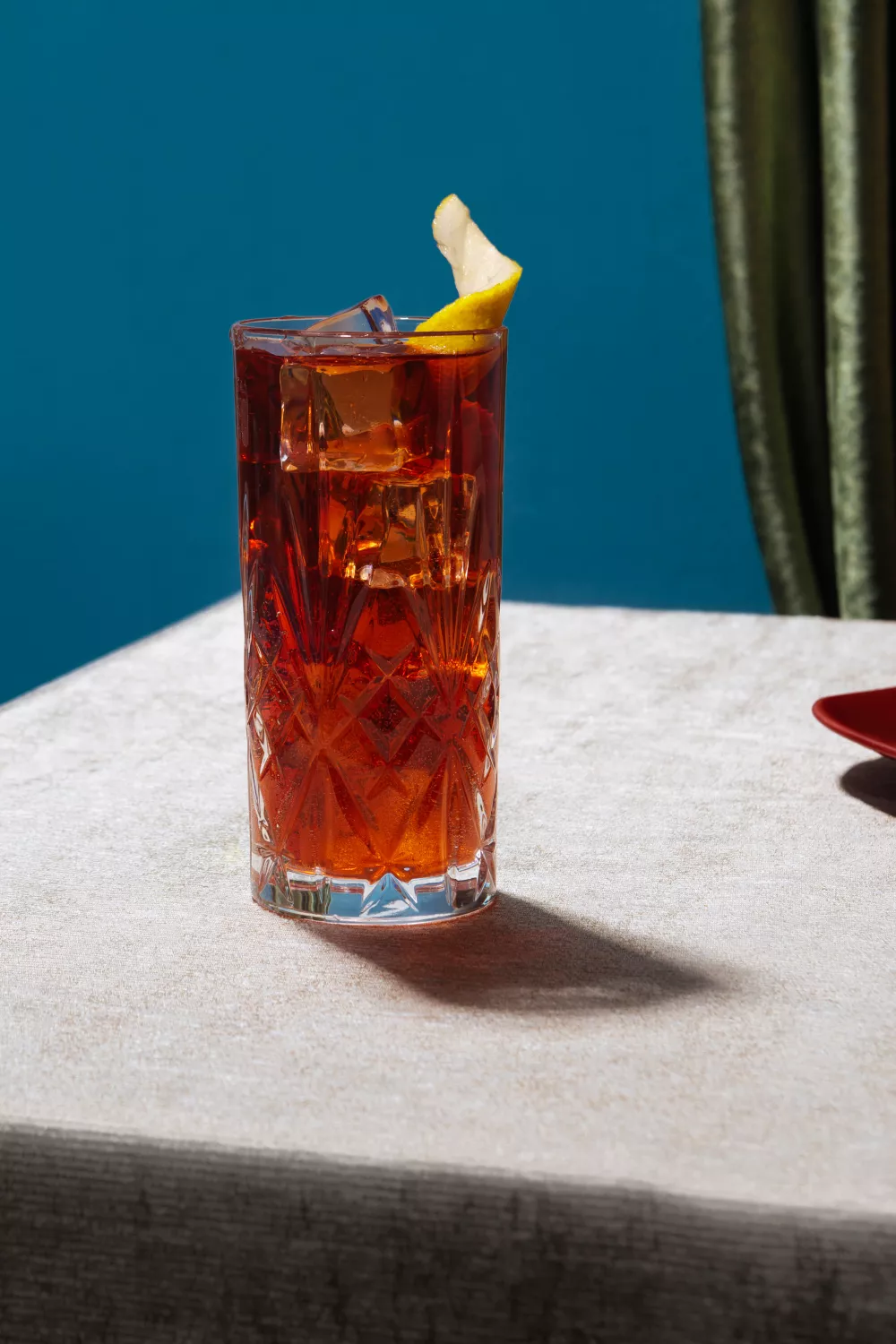 De klassieke Americano is een licht bittere aperitiefcocktail met Campari en Martini Rosso, verfrist met sodawater en een vleugje sinaasappel. Door de sinaasappelpartjes te kneuzen en de ingrediënten met ijs zachtjes door te roeren komen de aroma’s vrij, ideaal bij een zomerse borrel of als aperitief voor een diner. Serveer in een longdrinkglas voor een eenvoudige en elegante presentatie.