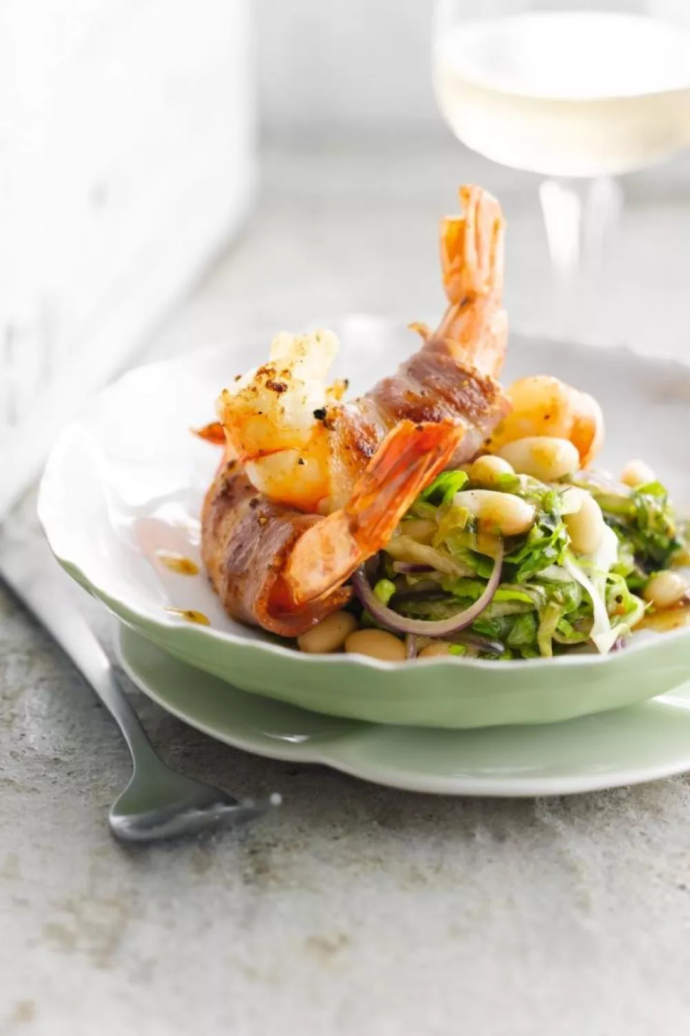 Krokant spek en sappige scampi omhullen een warme andijviesalsa met smeuïge witte bonen, knoflook en paprikapoeder. De combinatie van stoven en kort bakken geeft een hartig, licht romig gerecht dat perfect past bij een snelle doordeweekse avondmaaltijd of als smaakvol borrelhapje voor vrienden. Serveer met rustiek brood of een frisse salade voor een seizoenloze twist.