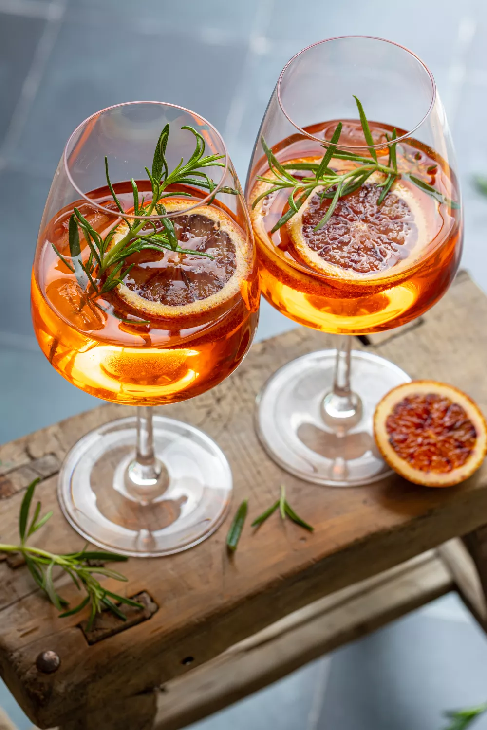 Aperol Spritz is een sprankelend, bitterzoet aperitief dat met prosecco, Aperol en bruisend water een instant zomerse sfeer op tafel brengt. Combineer ijsblokjes, Aperol, prosecco en bruisend water in een glas en werk af met sinaasappelschijfjes en een takje rozemarijn voor een frisse, aromatische touch. Perfect als feestelijk borreldrankje of zonnig aperitief dankzij de lichte, verfrissende smaak en de supersimpele bereiding.