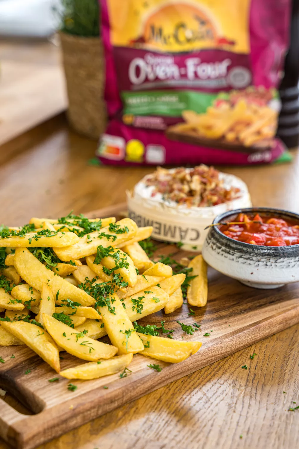 Deze gezellige aperoplank combineert smeuïge camembert met krokante ovenfrietjes en een warme Provençaalse tomatensaus voor een smaakvolle borrel. Geroosterd spek en knapperige walnoten geven extra bite terwijl verse tijm en citroenzeste zorgen voor frisheid, perfect om te delen tijdens een informele borrelavond of herfstige bijeenkomst. Snel te bereiden: frietjes en camembert in de oven en de saus rustig stoven op het vuur.