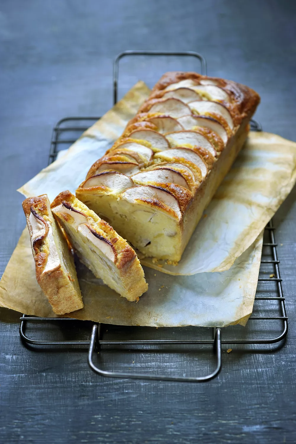 Schil de appels en snijd 2 appels in grove stukken. Meng deze nog door het deeg en stort het beslag dan in en ingeboterde en bebloemde bakvorm. Snijd de laatste appel in partjes en verdeel deze dakpansgewijs op de cake.