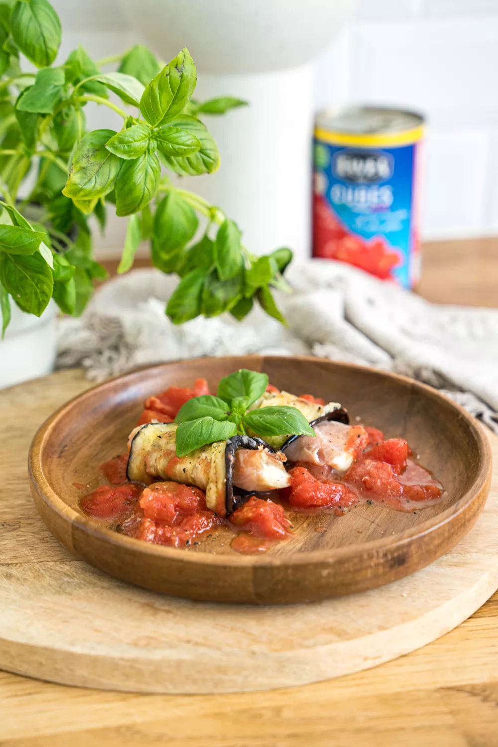 Auberginerolletjes uit de oven met romige mozzarella en Italiaanse ham zijn een smaakvol en licht hoofdgerecht, perfect voor een zomerse avond of een gezellige doordeweekse maaltijd. Dunne aubergineplakken worden eerst geroosterd, vervolgens gevuld met mozzarella en ham, strak opgerold en in een bed van tomatenblokjes gegarneerd met Parmezaanse kaas in de oven afgebakken. Werk af met verse basilicum voor een frisse mediterrane toets.