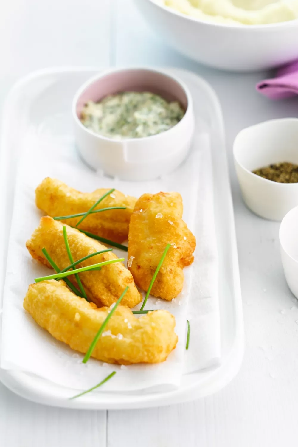 Snij de kabeljauwfilet in 8 gelijke, smalle stukken. Kruid met peper van de molen en zout. Dompel ze onder in het bierbeslag. Haal uit het beslag en frituur mooi krokant en gaar in hete olie van 180 °C. Laat uitlekken op keukenpapier.