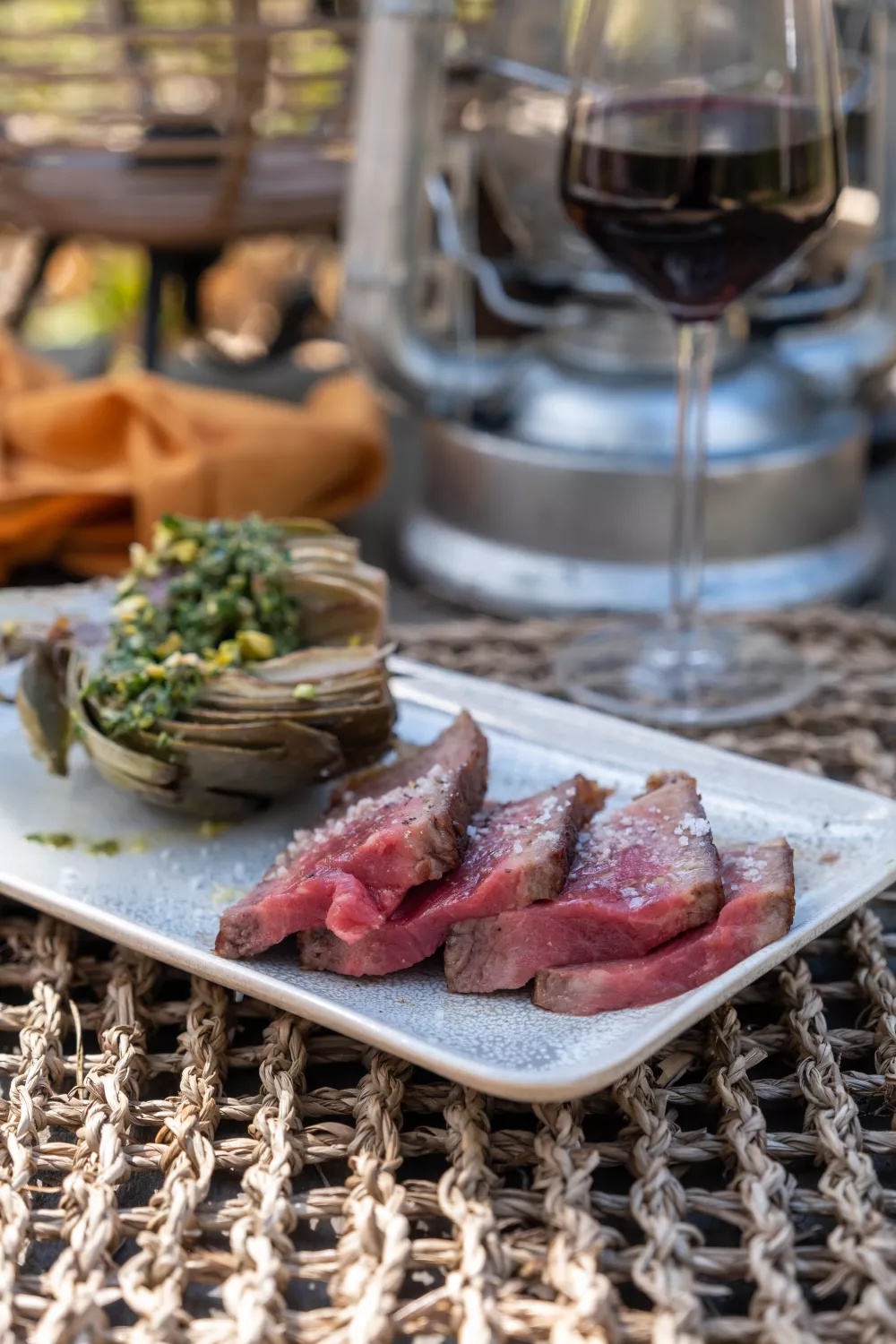 Bistecca Fiorentina met gegrilde artisjok en salsa verde