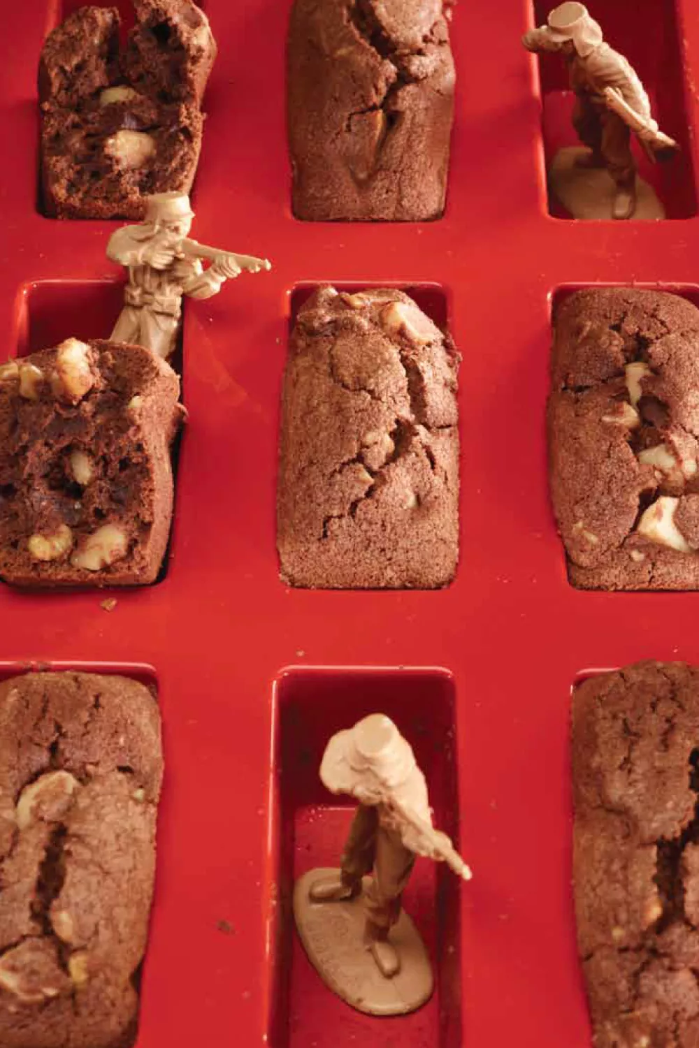 Verwarm de oven voor op 180 °C. Giet het beslag in een bakvorm (bij voorkeur een siliconen bakvorm) tot aan de rand. Bak de brownies gedurende 20 tot 25 minuten af in de warme oven.