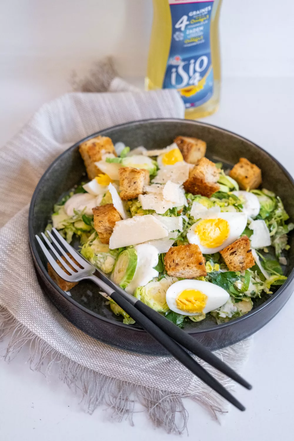 Deze frisse Caesar salade met geraspte spruitjes brengt hartige ansjovis en volle Parmezaanse kaas samen met knapperige ovencroutons en een romige dressing van eidooier en yoghurt. De spruitjes worden fijn geraspt in de foodprocessor voor een lichte, rauwe bite terwijl de croutons goudbruin en krokant uit de oven komen. Perfect als lichte lunch, bijgerecht in het winterse seizoen of een informeel diner met vrienden.