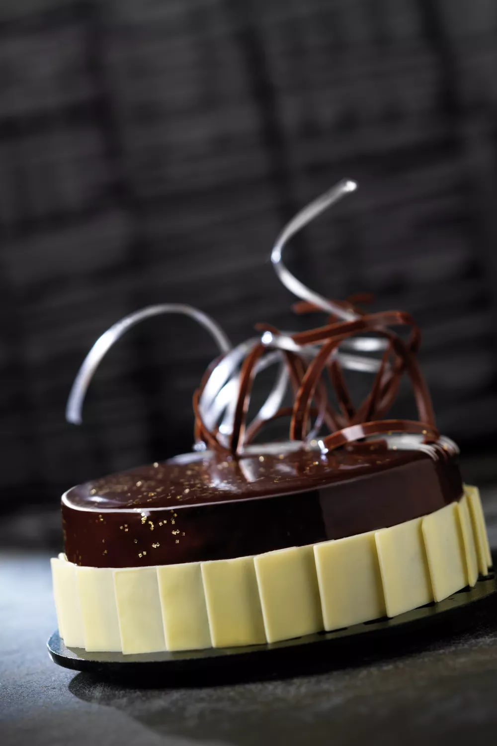 Kook room, water, suiker en glucose op. Los er na het koken de uitgeknepen gelatine in op. Meng het cacaopoeder met de chocolade, giet de warme vloeistof erop en meng met een handmixer. Gebruik de glaçage op 30 à 40 °C.