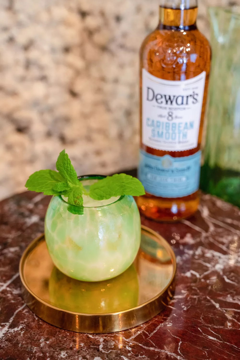 Deze Caribbean Sour verenigt de zachte, tropische tonen van Dewars Caribbean Smooth whisky met ananassap en vers citroensap, en krijgt een verrassend warm accent van kaneel. Een lepel yoghurt geeft romige body terwijl krachtig shaken en strainen in een tumbler met ijs zorgt voor een frisse, fluweelachtige textuur. Maak de kaneelsiroop zelf door suiker en water met een kaneelstokje te verwarmen en te laten trekken, garneer met munt en serveer als zomers aperitief of als feestelijke wintercocktail.