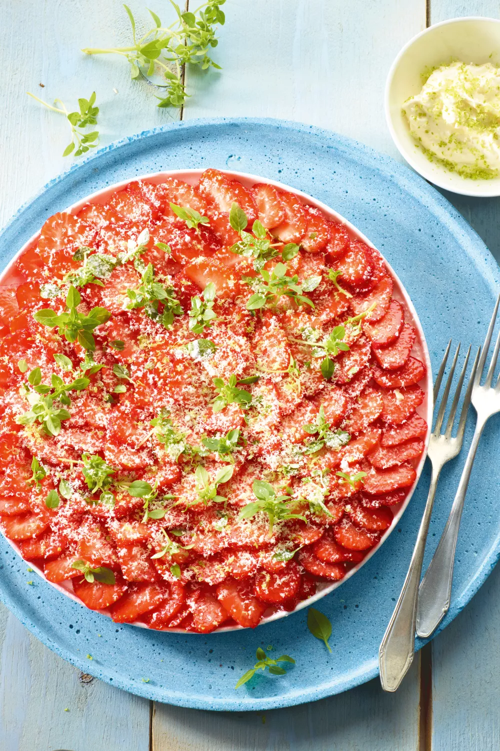 Stappenplan om recept “Carpaccio van aardbeien” te bereiden
