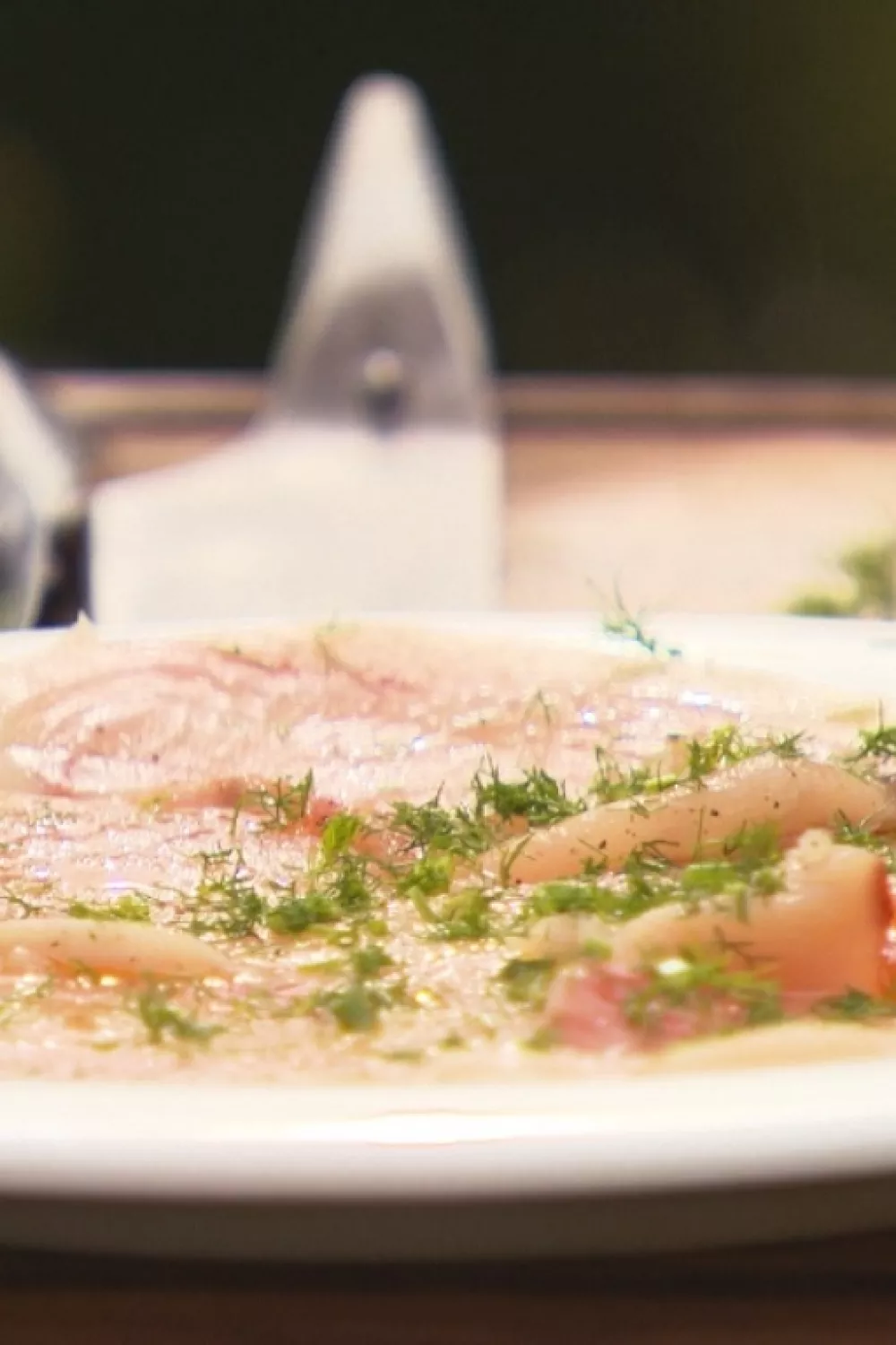 Carpaccio van zwaardvis met sinaasappelmarinade