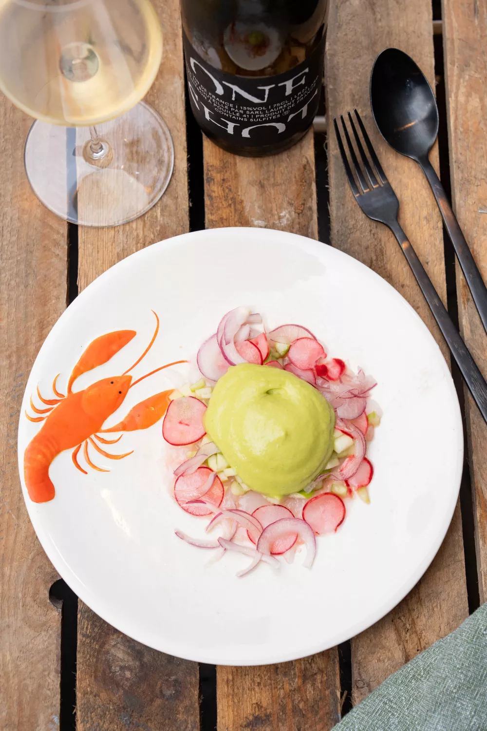 Een 100% Romorantin, een iets minder gekende Loire-druif maar wel met grote toekomst. Het citruskarakter van ceviche sluit perfect aan bij de levendige zuren van One Shot!