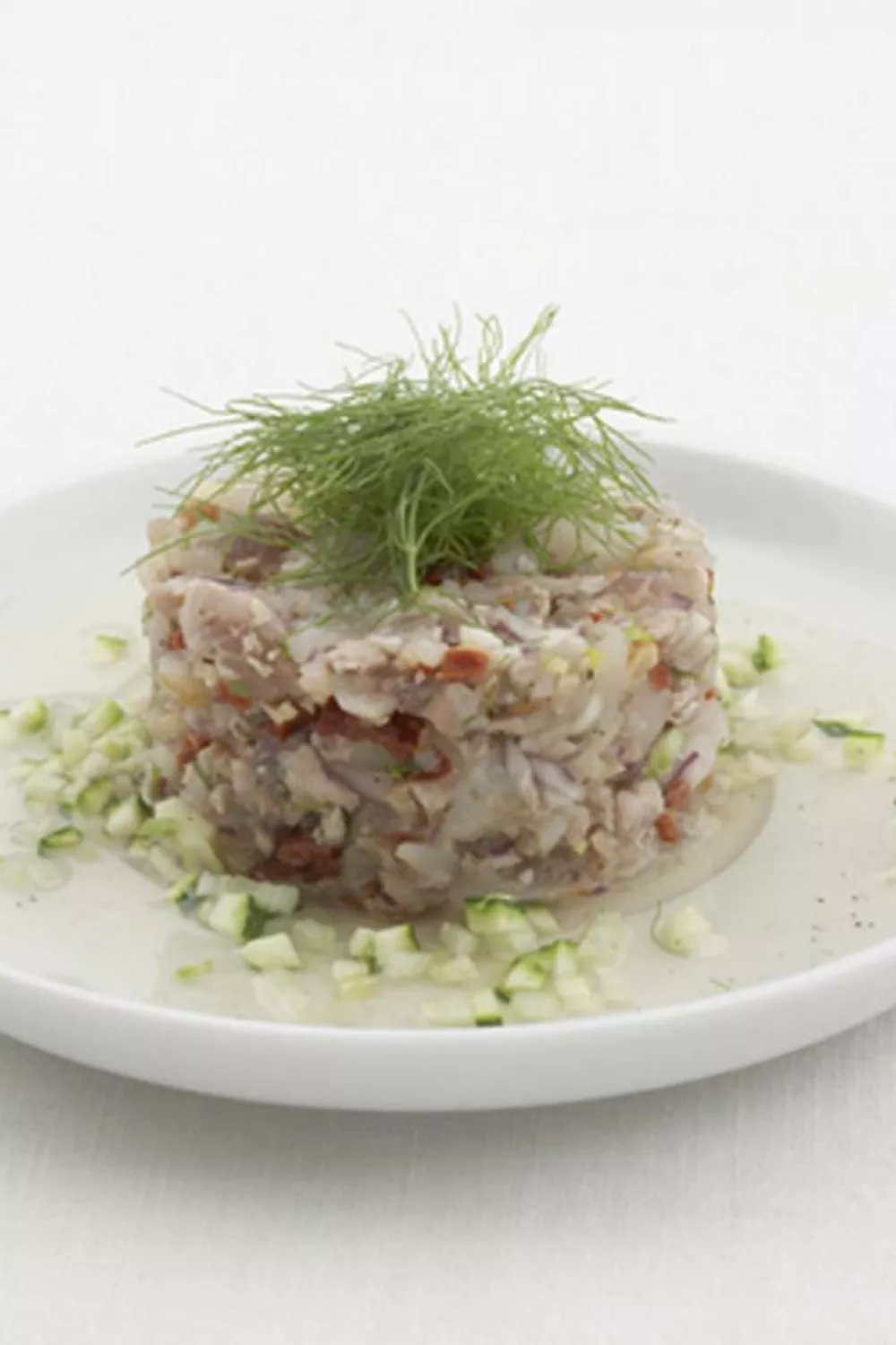 Frisse ceviche van tonijn en Sint Jakobsvruchten met knapperige venkel, courgette en een vleugje zongedroogde tomaat en citroen voor een elegante zomerse smaak. De vis wordt heel kort gebakken en fijngehakt tot tartaar, gekruid en gekoeld, terwijl de groenten zachtjes garen in witte wijn en Lacroix visfond voor extra umami. Ideaal als licht voorgerecht of feestelijke lunch voor liefhebbers van verfijnde zeevruchten en snelle, lichte technieken.
