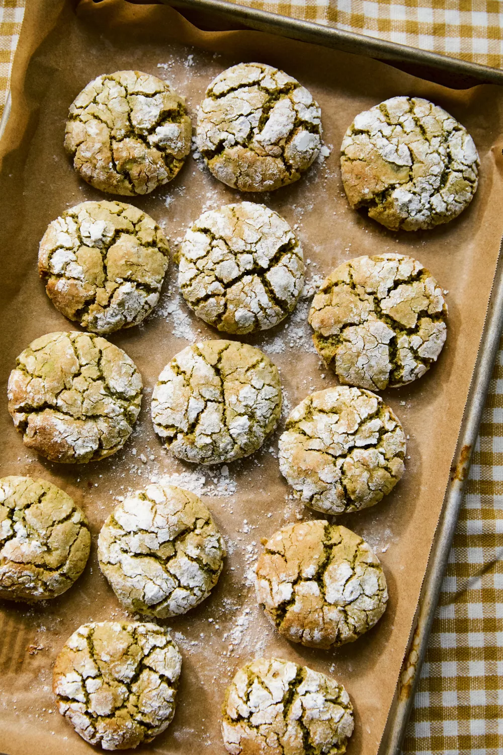 Zachte, knapperige citroen-pistachekoekjes met amandelmeel en stukjes ingelegde citroen die frisse, nootachtige smaken combineren tot een licht en feestelijk gebak. Het plakkerige deeg wordt tot balletjes gevormd, door poedersuiker gerold, gekoeld en krokant afgebakken in de oven, een heerlijke traktatie bij koffie, brunch of een zomerse borrel. Perfect voor lente en zomer, makkelijk voor te bereiden en heerlijk om enkele dagen in een koektrommel te bewaren.