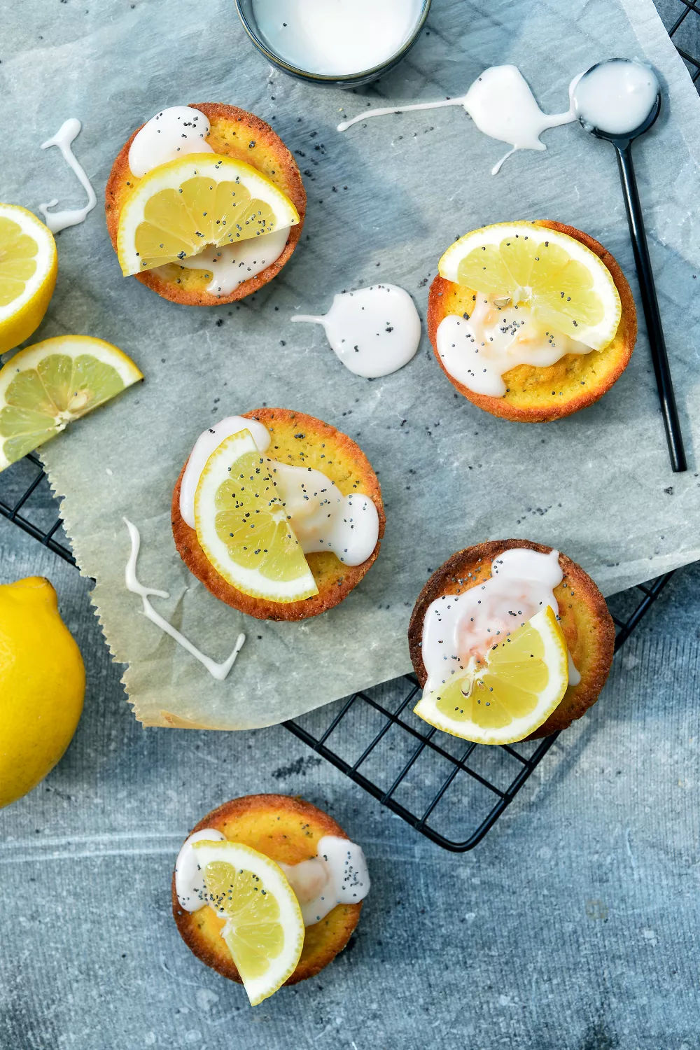 Frisse citroencakejes met maanzaad: boterige, luchtige cakejes met citroenrasp en een lichte crunch van maanzaad, afgewerkt met een glanzend citroenglazuur. Het eenvoudige beslag wordt geklopt, in muffinvormpjes in de oven gebakken en daarna bestreken met een glazuur van eiwit en poedersuiker. Heerlijk bij de koffie, als brunchgebak of als zomers dessert.